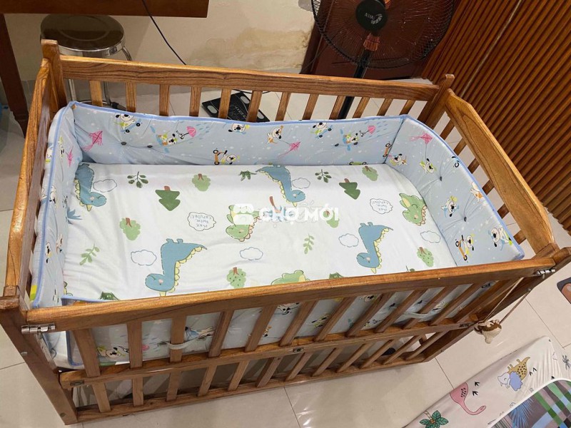 Cũi em bé gỗ màu nâu