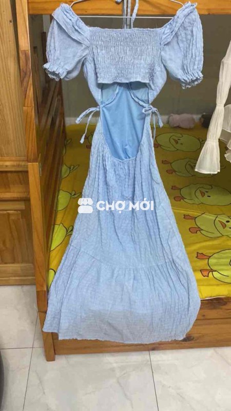 thun co giãn thoáng mát đầm dài, hở lưng màu xanh size S/M