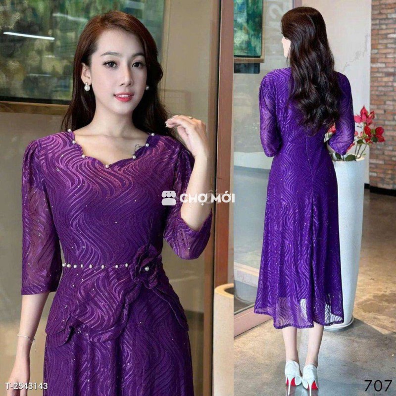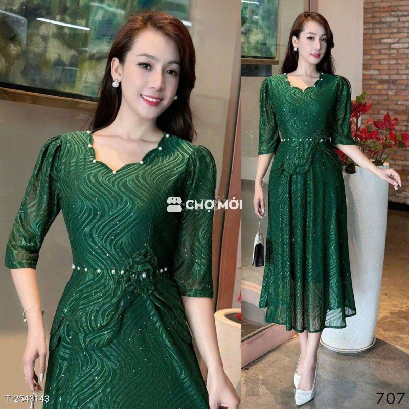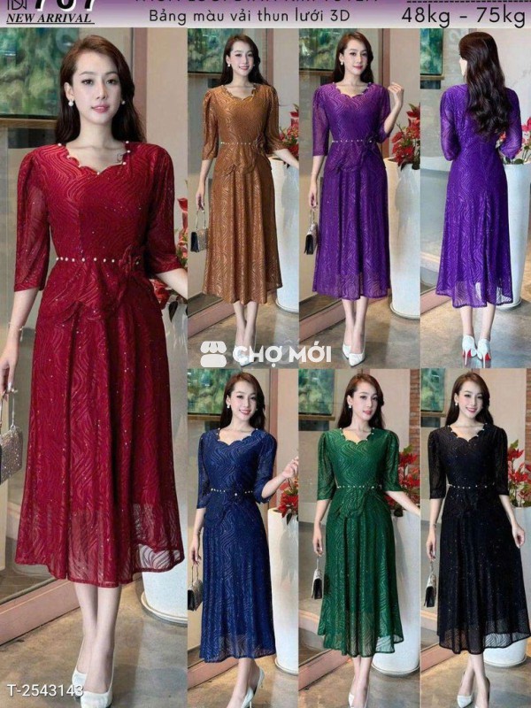 Đầm Midi trung niên dự tiệc - 590.000đ ✨ Chất liệu thun lưới co giãn, thoải mái và tôn dáng. Freesize từ 50-75kg, nhiều màu sắc lựa chọn. Inbox để đặt hàng nhanh nhé! #damdutiệc #thunluoi