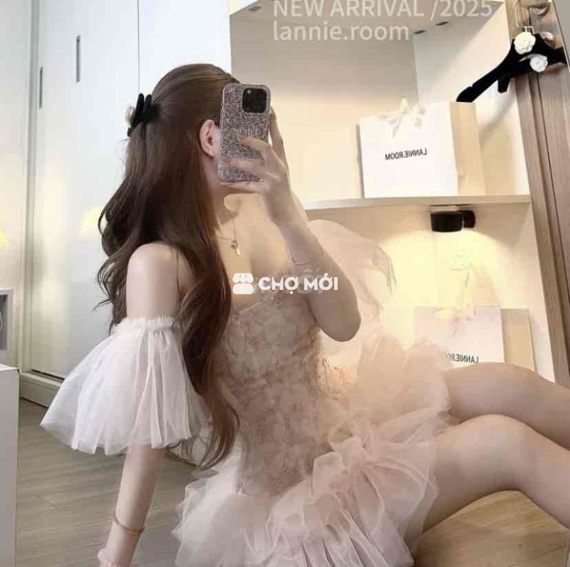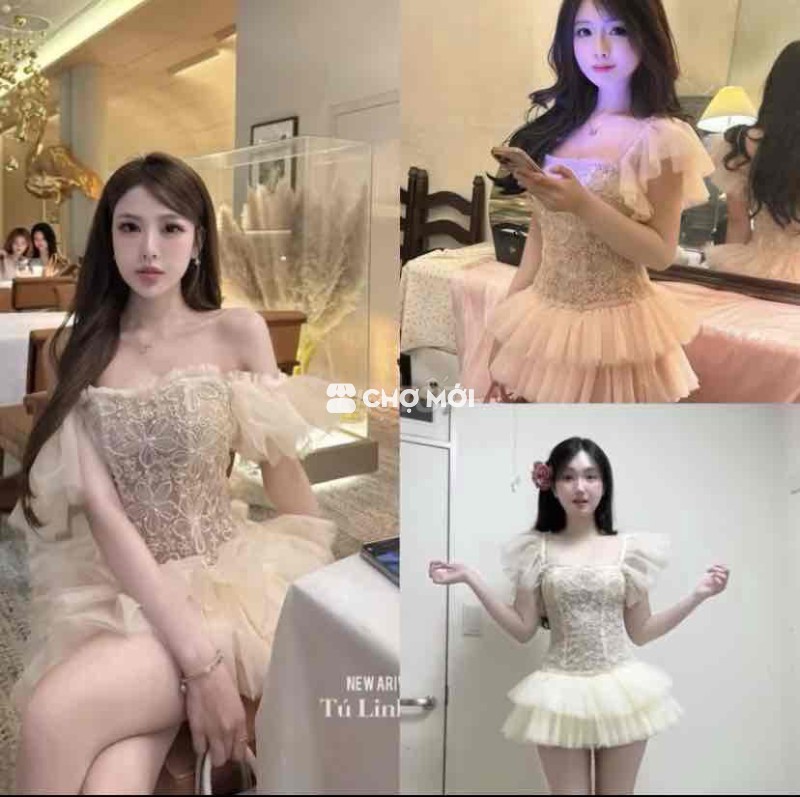 Đầm dự tiệc công chúa trễ vai, chất liệu vải voan và ren mềm mại. - Màu hồng pastel và kem nhẹ nhàng. - Có size S, M. - Thiết kế sang trọng, phù hợp đi tiệc.