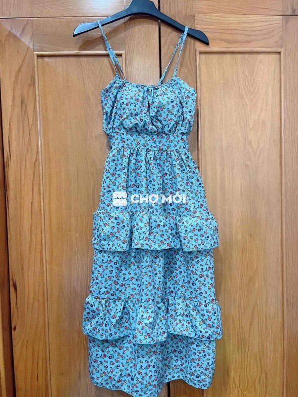 Maxi hoa xanh, dài qua đầu gối, dưới 53kg vừa có sẵn mút ngực, đã mặc 2 lần
