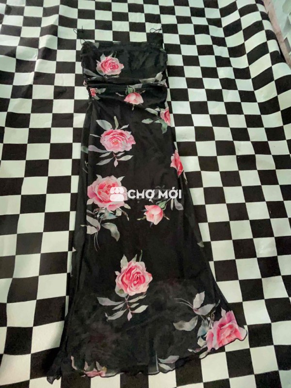 Đầm nữ đen họa tiết hoa duoi 55kg