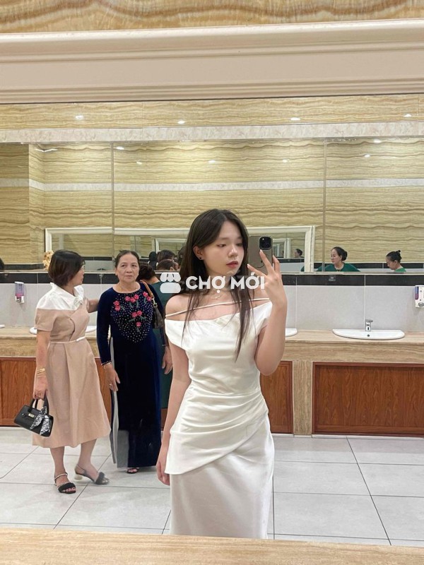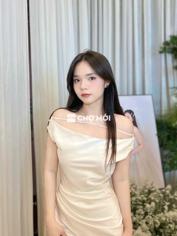 Đầm nữ lụa trắng kem dự tiệc