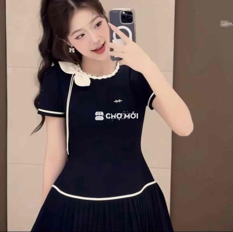 Đầm nữ ngắn tay, dáng xòe, màu đen và màu kem. - Chất liệu vải mềm mại, thoáng mát. - Thiết kế trẻ trung, dễ mặc. - Phù hợp đi chơi, dạo phố.