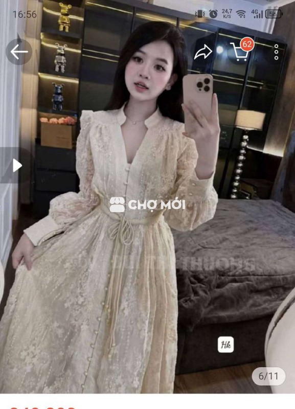 Đầm ren màu trắng kem, thiết kế tinh tế, tôn dáng. ch mặc nguyên tem mag