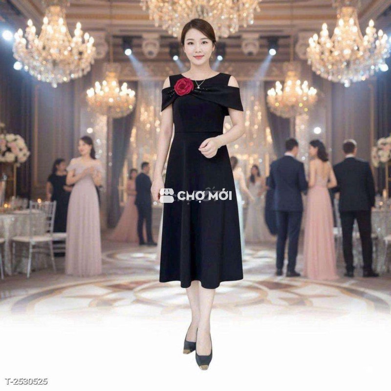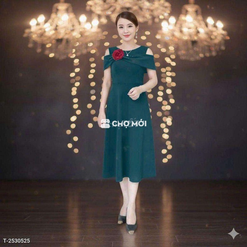 Đầm xòe nữ trung niên trễ vai cườm sang trọng hàng cao cấp
