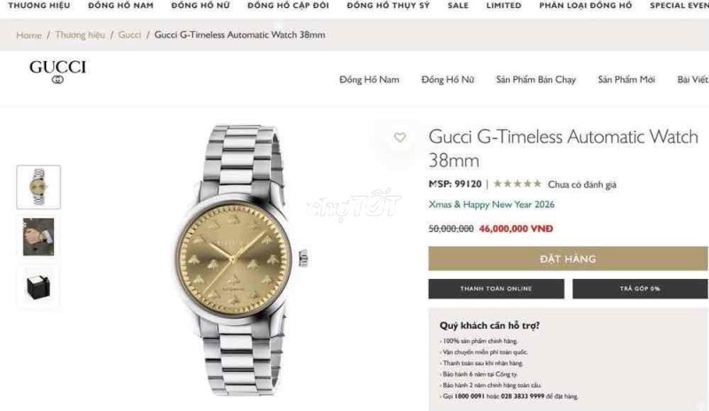 Đồng Hồ Nam Gucci YA1264191 G-Timeless MultiBee Automatic - Mặt Vàng Gold Siêu Hiếm Đẹp - Size 38mm Fullbox...