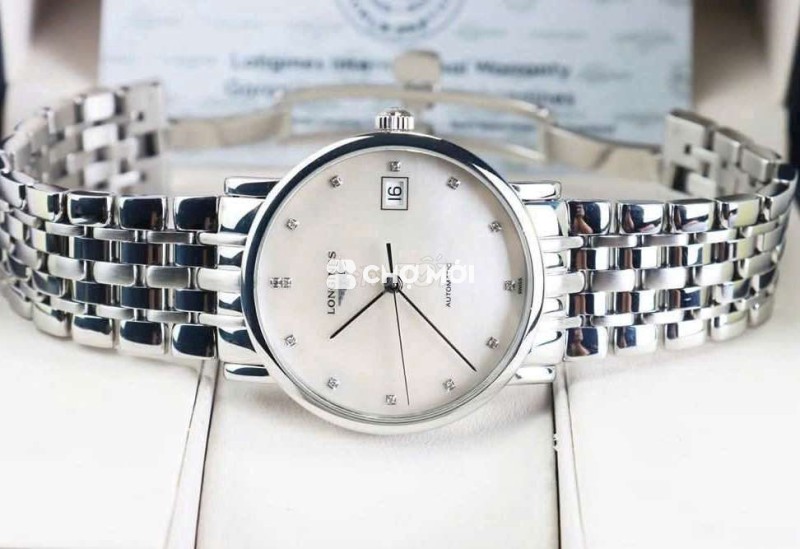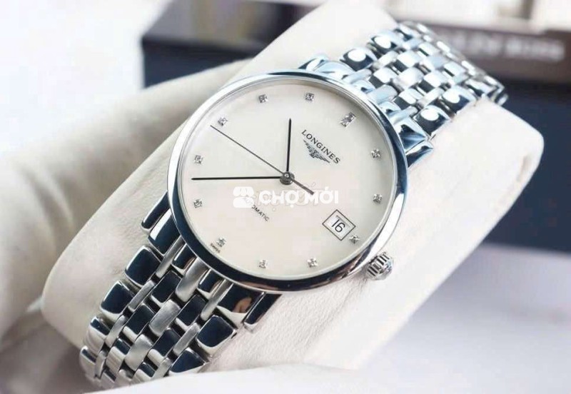 Đồng Hồ Nam : Longines Elegant Automatic, mặt xà cừ, cọc số đính 12 viên Kim Cương Fullbox....