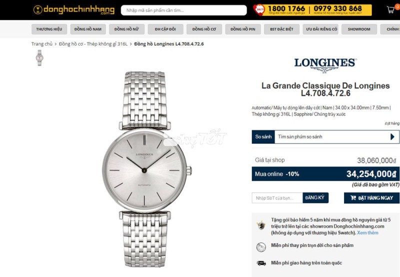 ĐH Nam : Longines La Grande Automatic, bản dây thép - Size 34mm - Fullbox...