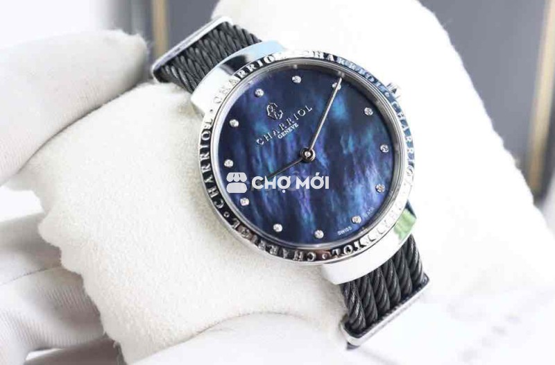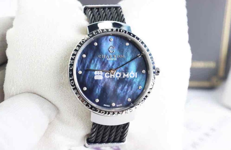 Đồng Hồ Nữ : Charriol Slim, mặt xà cừ Tím, cọc số đính 12 viên Kim Cương thiên nhiên, Fullbox.