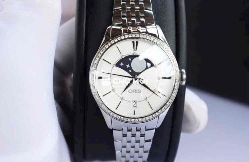 Đồng Hồ Nữ : Oris Artelier Grande Lune Automatic, Lịch MoonPhase - Cọc số giờ & Niềng đính Full Kim Cương - Size 36mm Fullbox...