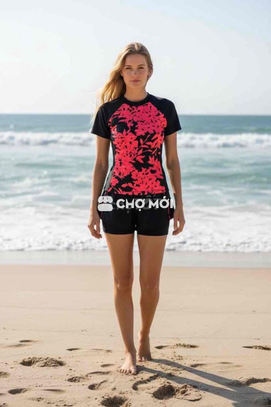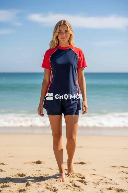 ✔ Thiết kế áo tay ngắn cổ cao giúp bảo vệ da, chống nắng hiệu quả.