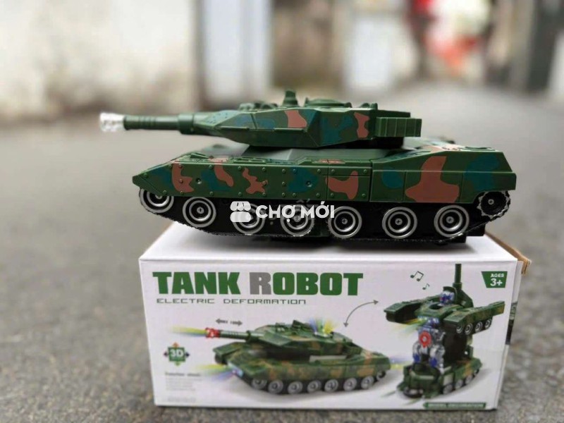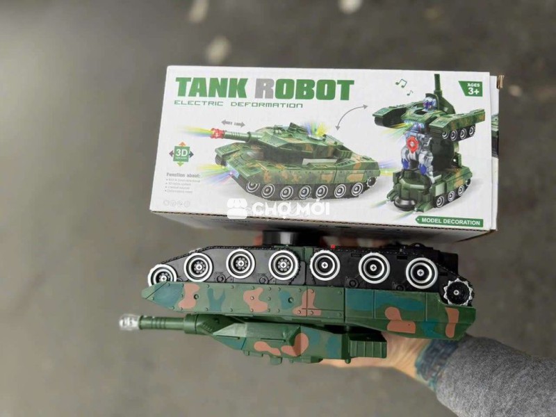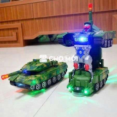 Đồ Chơi Trẻ Em Xe Tăng Biến Hình Robot Tự Động Có Đèn Và Nhạc