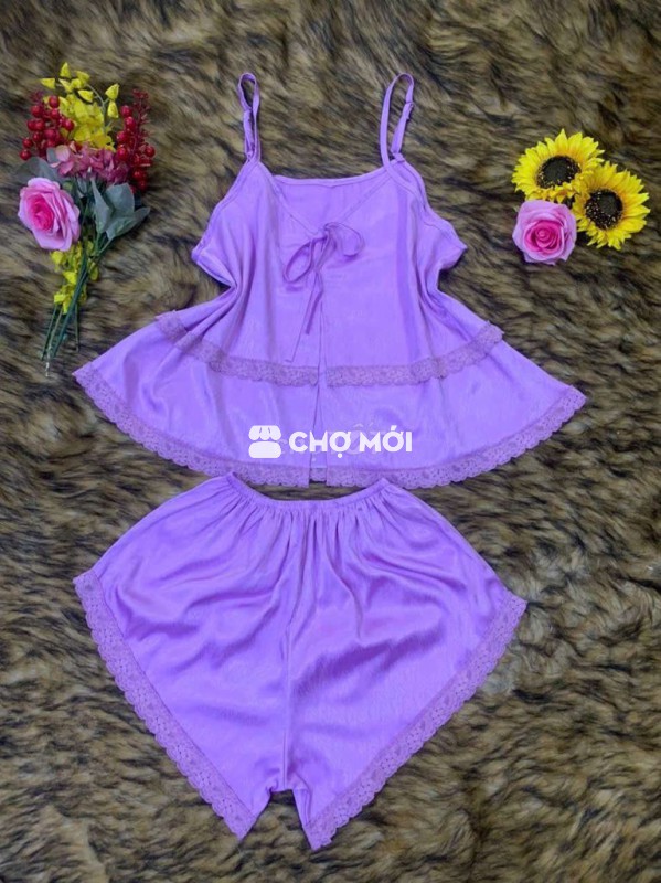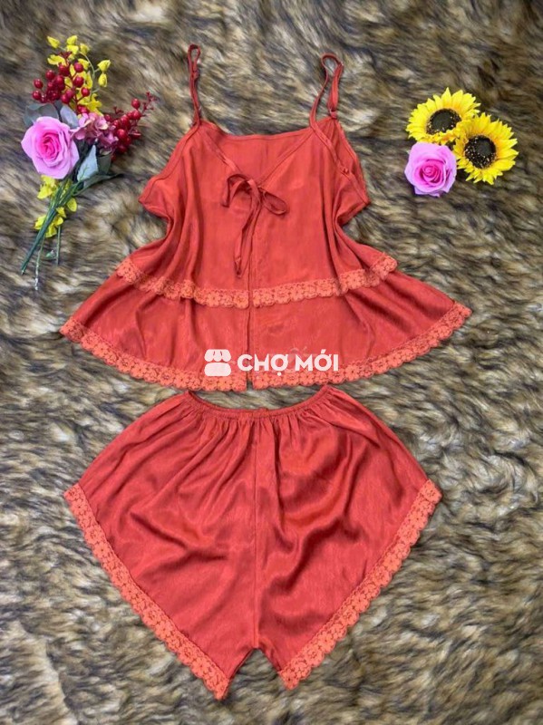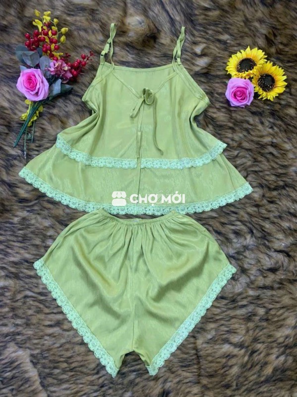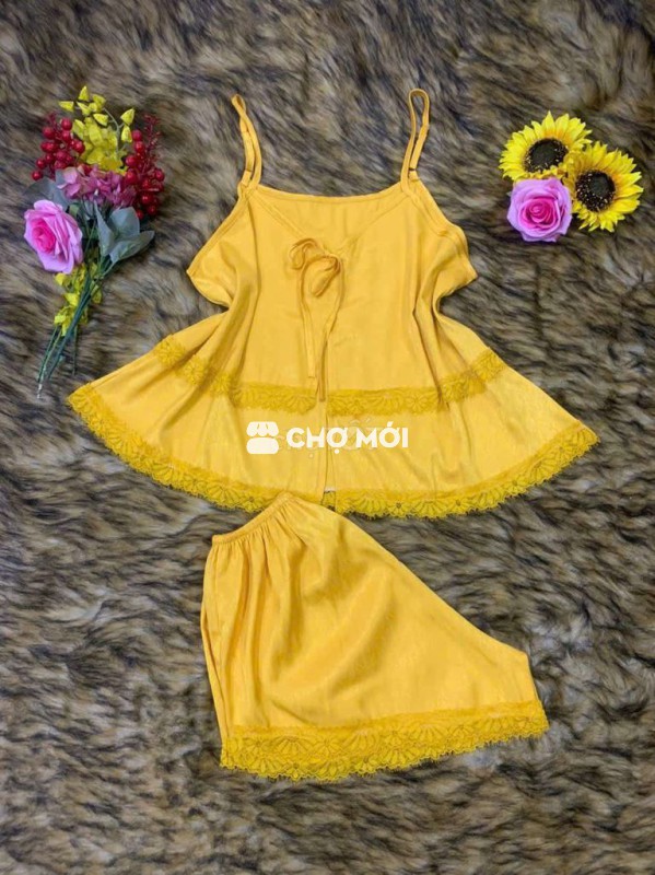 Đồ ngủ lụa hai dây cho nữ, chất liệu lụa mềm mại, thoáng mát.