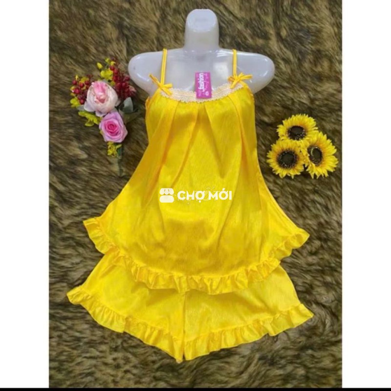 Đồ ngủ lụa cho nữ, chất liệu mềm mại, thoáng mát. - Thiết kế thoải mái, mang lại cảm giác dễ chịu khi mặc. - Có nhiều màu: hồng, vàng, xanh ngọc.