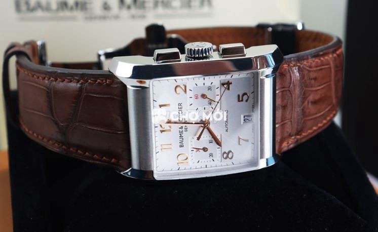 Baume & Mercier Hampton sở hữu thiết kế chữ nhật kinh điển, đậm chất dress watch quý ông Thụy Sĩ. Bản Chronograph Automatic hiếm, form thanh lịch nhưng vẫn mạnh mẽ, đeo rất sang tay.