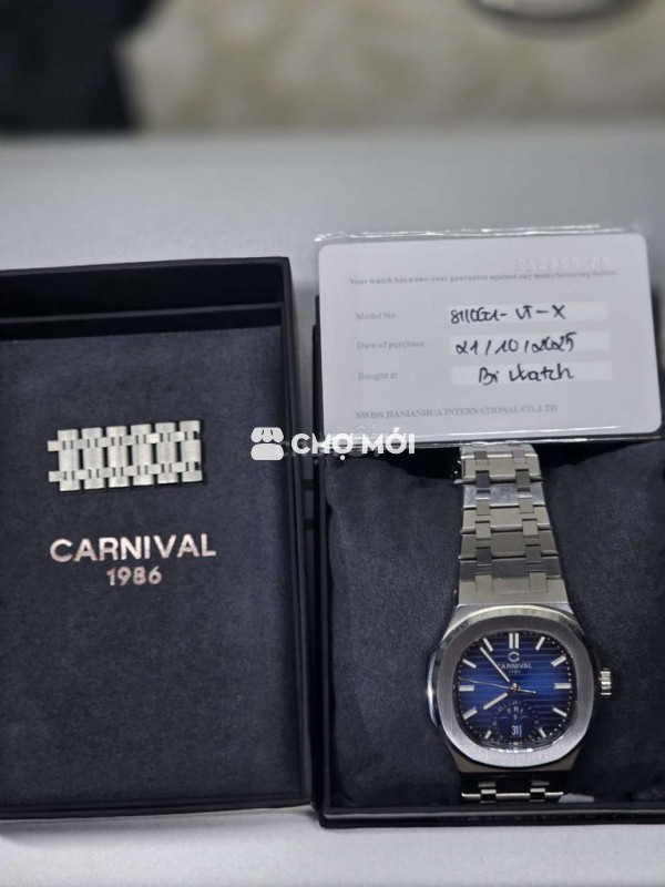 Đồng hồ carnival Nam 8110G Mới mua 10 ngày chính hãng tại Bi watch Như mới không trầy xước Do đeo thấy không hợp nên muốn pass lại cho ae có nhi cầu .