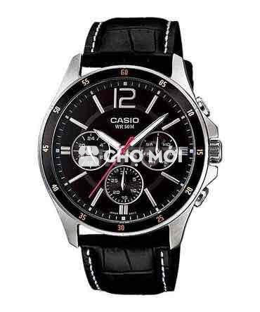 Đồng hồ Casio WR 50M màu đen, dây da, thiết kế nam tính, mạnh mẽ. - Chống nước 50M, thoải mái đi mưa, rửa tay. - Phù hợp cho nhiều dịp, từ đi làm đến đi chơi.