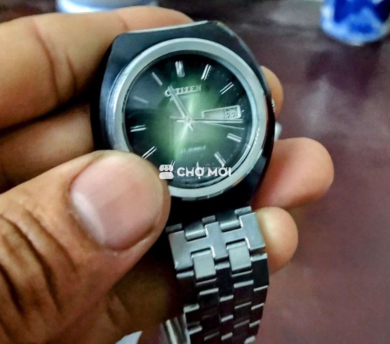 đồng hồ cổ, citizen phom đĩa bay, mắt kính mặt xanh rau muống size 36, không chống nước máy automatic, nguyên Rin nguyên bản có hỗ trợ cót tay, bán tự động