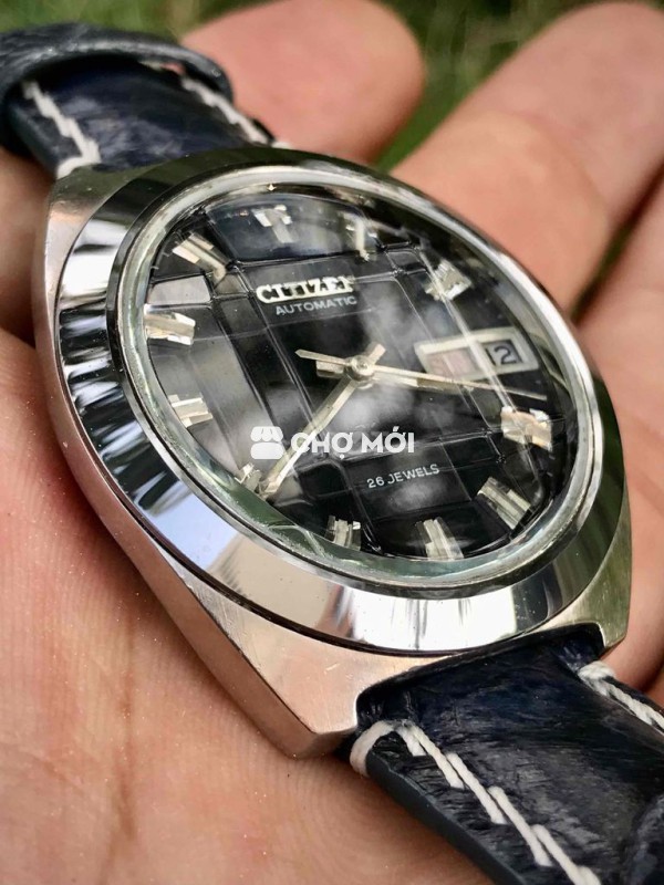 (Giá 2tr3 Ck bao ship) Đồng hồ Citizen Seven Star Automatic 26 jewels 1970s Size 38mm, máy cơ Citizen hãng chạy cực chuẩn. Cọc số vát kim cương cực đẹp, kim có Luminar. Núm CTZ zin. Mặt xanh Dark Blue kết hợp bộ dây da đà điểu xanh đậm, rất hợp anh em mạng Thuỷ. Độ nét cao, gần như mới. Ko có gì để chê.