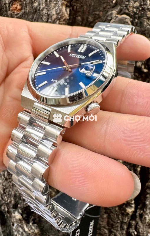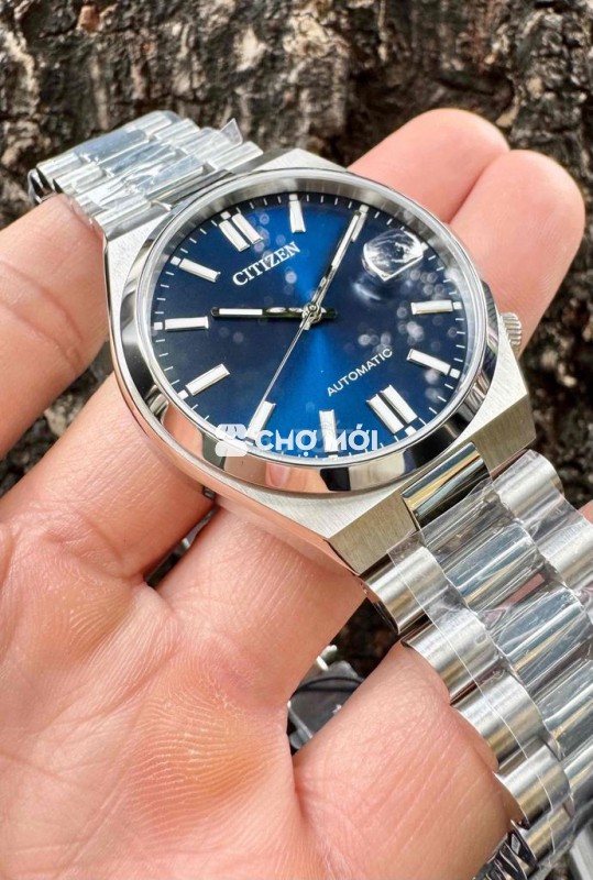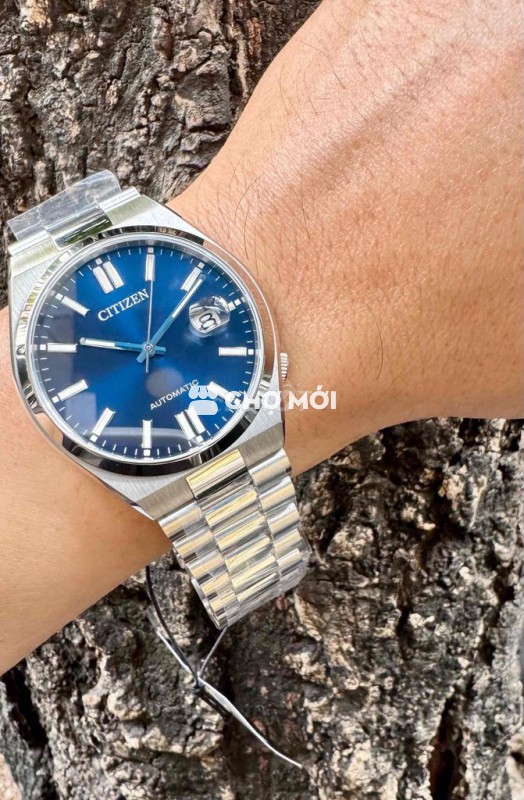Đồng hồ Citizen Tsuy.osa Blue dây thép đúc, thiết kế nam tính, sang trọng. - Mặt kính Sapphire, size 40mm. - Máy Automatic vàng, dạ quang sáng. - Chống nước 50M. - Giá 6 triệu.