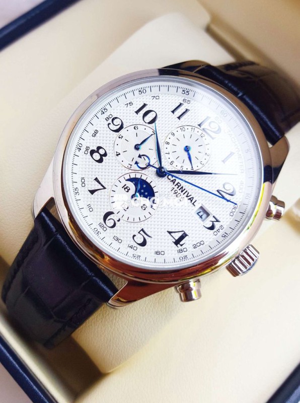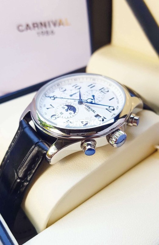 - Phiên bản Tripple Calender nổi tiếng. Chạy full 6 kim gồm lịch ngày, lịch thứ, lịch tháng và lịch trăng sao quá đẳng cấp. Định vị ngày và đêm. Ban ngày hiển thị mặt trời. Ban đêm hiển thị mặt trăng và các vì sao
