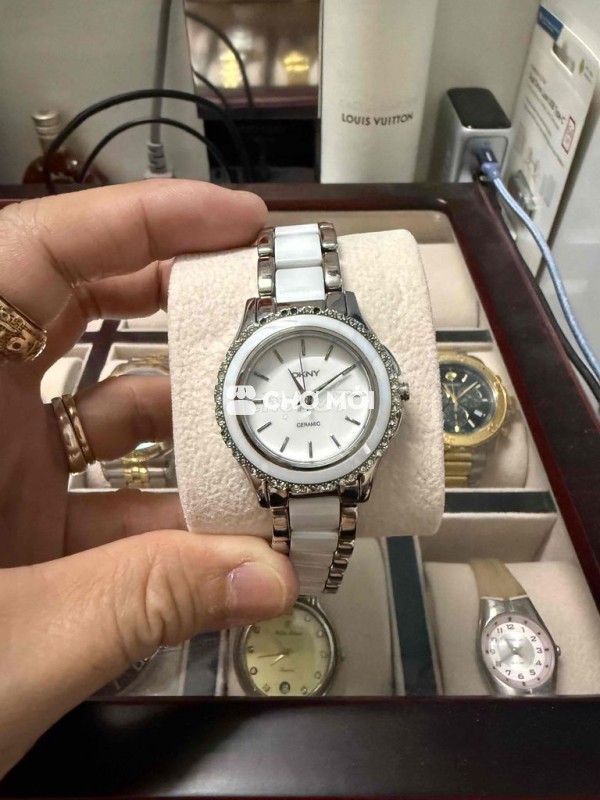 Đồng hồ DKNY nhatmf sử dụng thời gian mới thay pin và vệ sinh sạch sẽ , tất cả hoàn hảo , ngay góc 12h có rớt mấy viên đá nhỏ để ý mới thấy ( có thể mua đá gắn vào dc) Để lại 499k