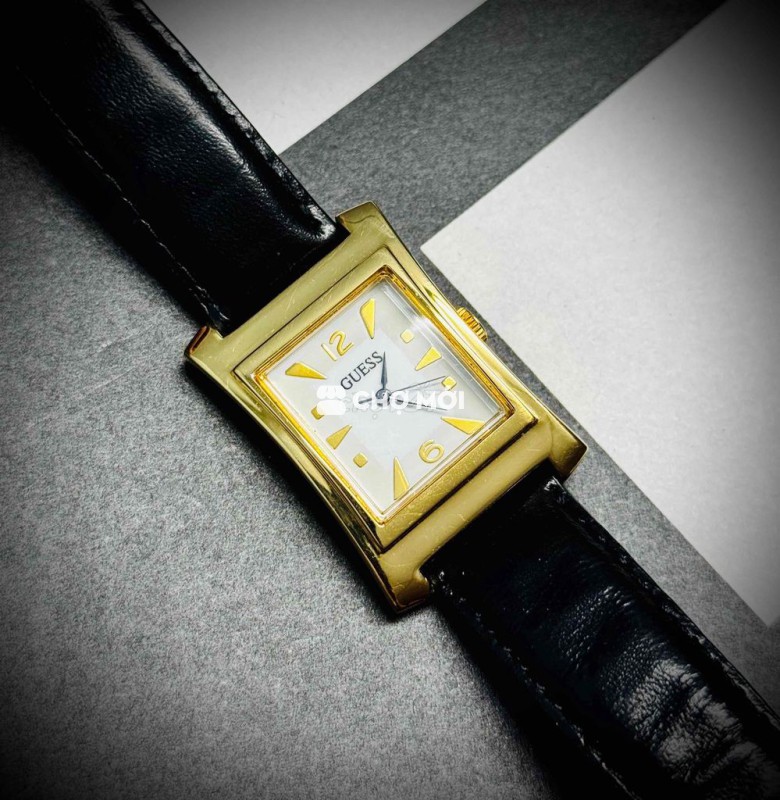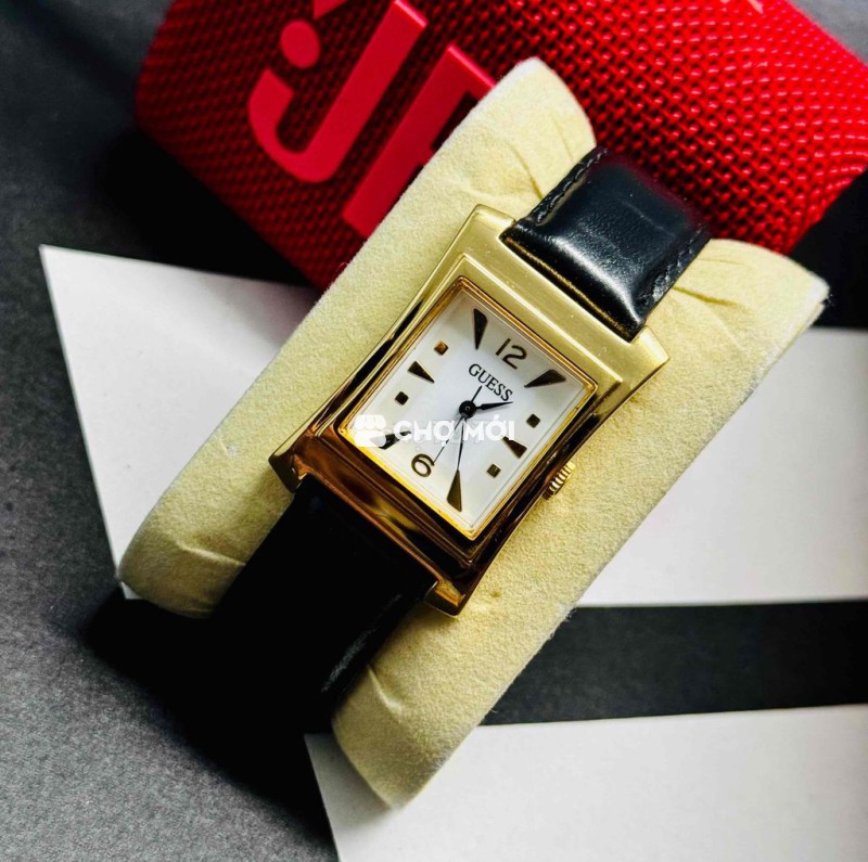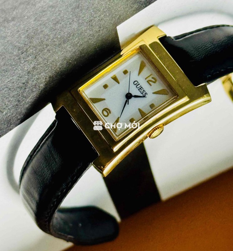 Tank GUESS Dial trắng cọc số vàng Mặt kính đẹp k trầy Nước vàng sáng bóng Dây LK khoá zin Size 25x33 chưa càn núm Lug 18mm X trăm nhỏ
