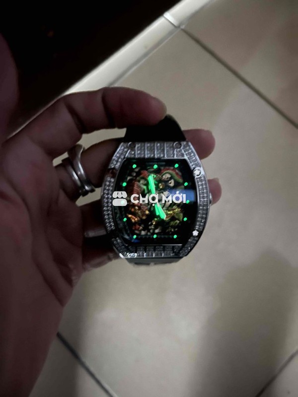 Đồng hồ long hổ tranh đấu Máy cơ tích cót 48h Chống nước 50m Tình trạng nứt kính Mặt dưới xuống màu Có thương lượng giá