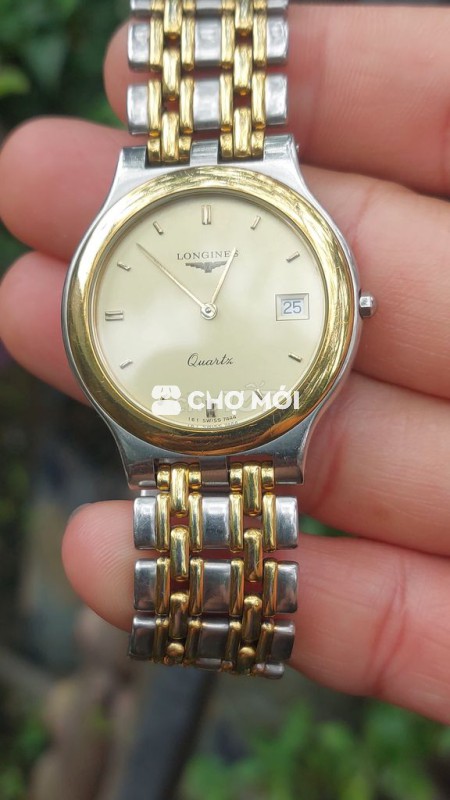 Longines Quartz Demi vàng Mặt vàng mở gà với 1 lịch Size 34mm. K đo núm Máy pin ic đen cao cấp chính hãng Longines