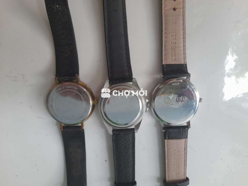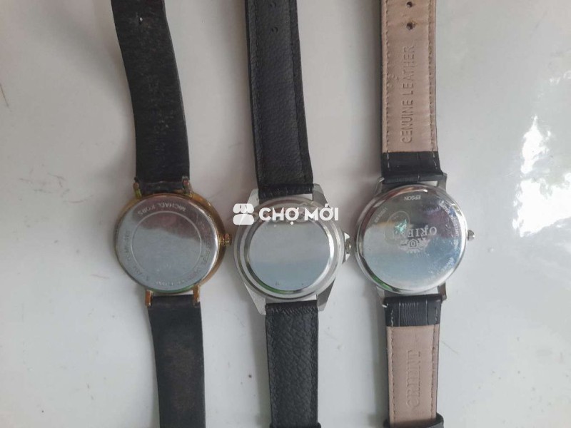 Cần bán 3 đồng hồ quartz như hình: Đồng hồ đang sử dụng tốt + chạy chuẩn + size lớn + kính không trầy xước + dây da. Giá: 200000₫/1 cái. LH: 430/57/17 CMT8-P11-Q3. Cám ơn Chợ Tốt đăng tin.