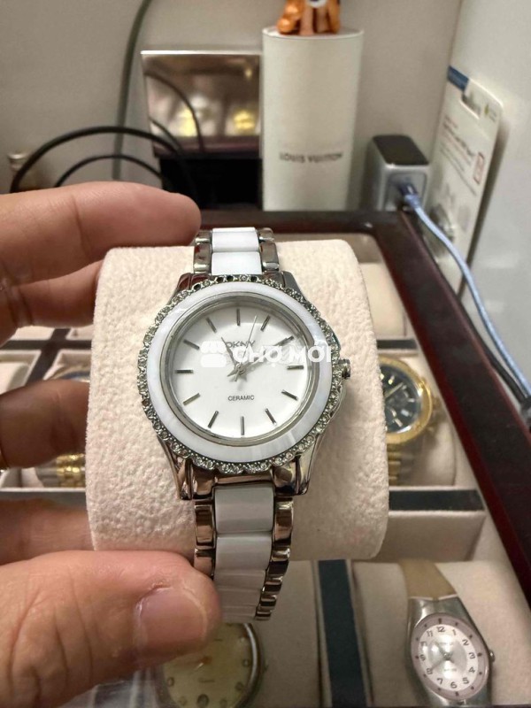 Đồng hồ DKNY SIZE 28 đã vệ sinh sạch sẽ thay pin mới Tất cả hoạt động tốt và đẹp Chỉ rớt mấy viên đá nhỏ ngay góc 12h Để lại chị em 600k nhé