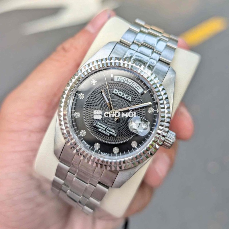 Đô sa daydate auto D141SBK Dial hoàn thiện cực đẹp - đính 8c k/cương size 40mm lần đầu xuất hiện Kính saphire kèm ô cyclop lịch Cal dx swiss 28.800 mượt mà Núm srewdown - chống nước 100m New fullbox thẻ kc hãng Săn đc 1 chiếc *** chỉ 12.X Tel ***