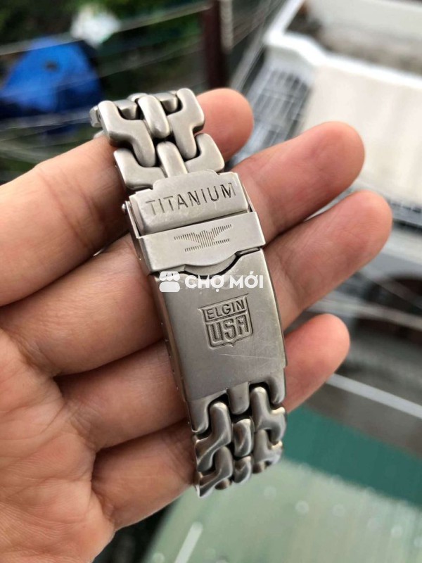 Đồng hồ ELGIN USA (2hand), full titanium , máy năg lựơg pin rất khoẻ, kim và mặt dạ quag màu khá đẹp, đáy xoáy núm vặn chốg nc ok, dây xương cá độc đáo, độ mới cao, có lịch goc 3h, Sz 41 cả núm.!
