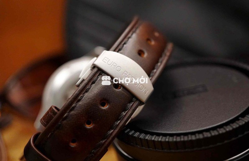 Dây da nâu may thủ công, khóa gập khắc logo EURO PASSION cho cảm giác sử dụng chỉnh chu.