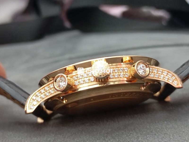 Đồng hồ IWC Schaffhausen Chronograph Automatic dành cho nam. - Thiết kế sang trọng với vàng hồng và kim cương. - Mặt đồng hồ màu đen nổi bật. - Phù hợp cho những ai yêu thích sự đẳng cấp.