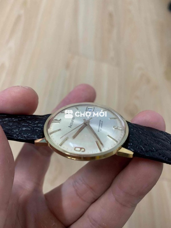 ACCURIST cơ cót Thuỵ sĩ 17 chân kính, vỏ bọc vàng 14k ( có khắc trên vỏ 14 k Goldplated 10 micron) , vỏ vàng đẹp ko mòn, máy Accurist Swiss 17 jewel, giữ giờ lâu, size 34 không tính núm