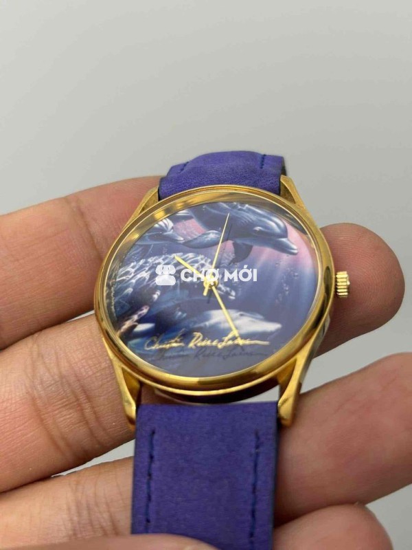 ---ZÁ 500K---Chuyển khoản bao ship tặng pin. Mặt cá heo đại dương tím size 33 quá đẹp. Máy nhật lắp ráp tại mỹ, dây tím còn đẹp.