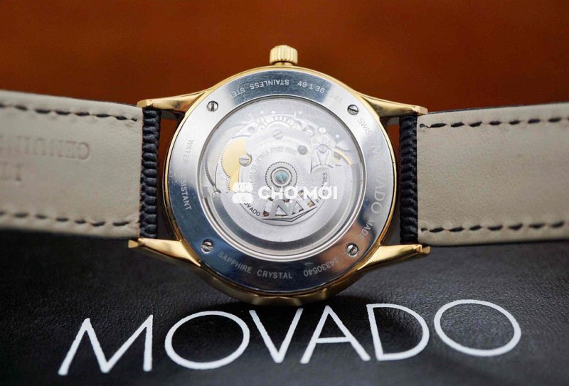• Nắp đáy lộ máy (Open-heart back) – rotor khắc logo Movado