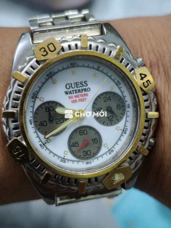 Đồng hồ Mỹ 3 cốt 6 kim, size 40mm không kể núm, đờ mi vàng, niềng xoay, đáy xoáy chống nước. Giá 400K