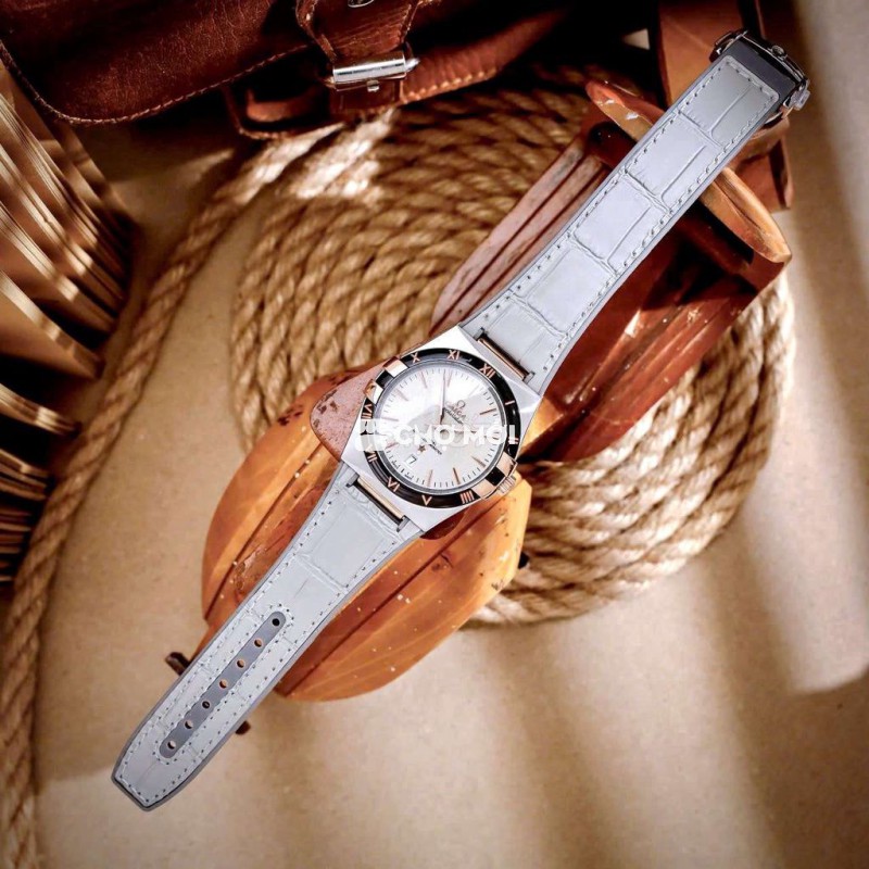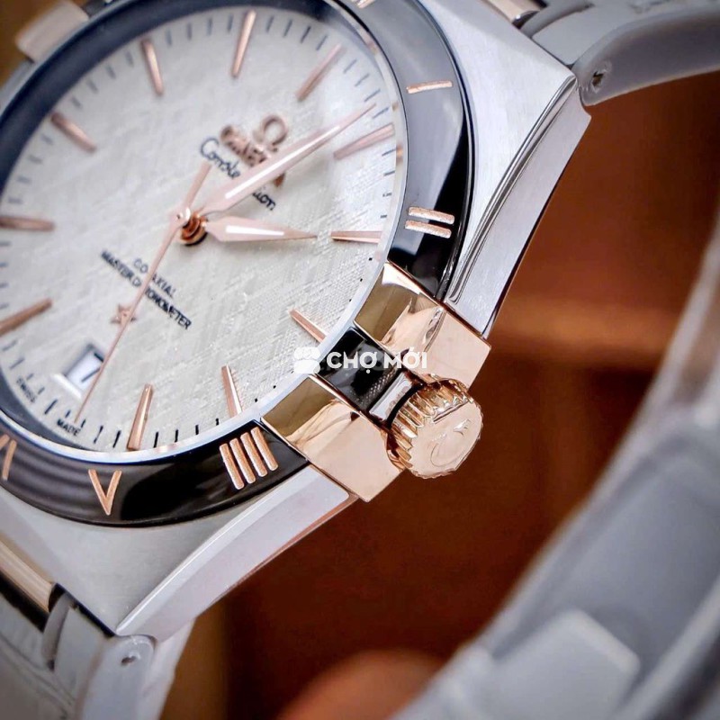 • Mẫu thép không gỉ 41mm này có viền bằng gốm với các chữ số La Mã bằng Liquidmetal ™ , cửa sổ ngày ở vị trí 6 giờ. Các kim, logo O.MEGA, ngôi sao Constellation và các cọc số khía cạnh đều được mạ rhodium.