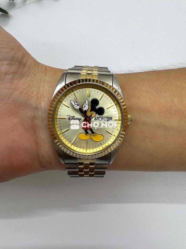 Đồng hồ nam Disney Quartz nhật • Size mặt 35 , lịch thứ & ngày • Size tay dài 17 • Form Ro.lex, niềng khía, demi vàng • Mặt vàng, cọc số gạch nổi, 2 tay mickey chỉ giờ và phút Giá: 280k