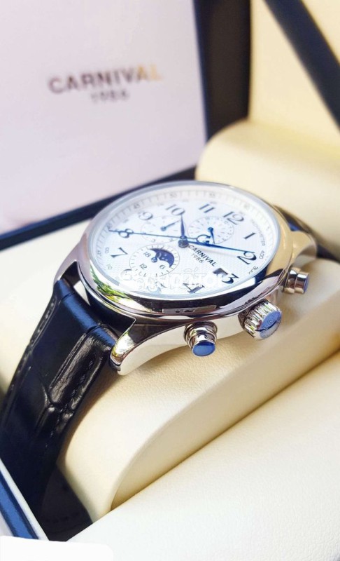 - Phiên bản Tripple Calender nổi tiếng. Chạy full 6 kim gồm lịch ngày, lịch thứ, lịch tháng và lịch trăng sao quá đẳng cấp. Định vị ngày và đêm. Ban ngày hiển thị mặt trời. Ban đêm hiển thị mặt trăng và các vì sao
