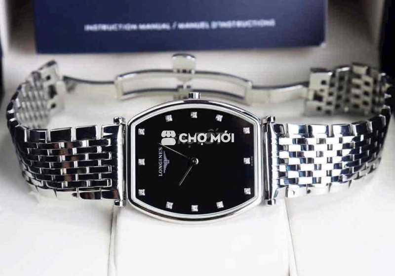 ĐH Nam : Longines La Grande siêu mỏng, dây thép, mặt đen cọc giờ đính Kim Cương - Fullbox...
