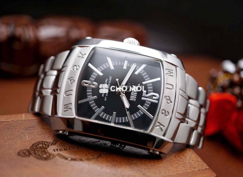 mặt đen tối giản, cọc số nổi sắc nét, kim to bản dễ nhìn; kết hợp vỏ thép liền khối và dây thép chắc tay – phù hợp cho người thích phong cách nam tính, hiện đại, không đại trà.