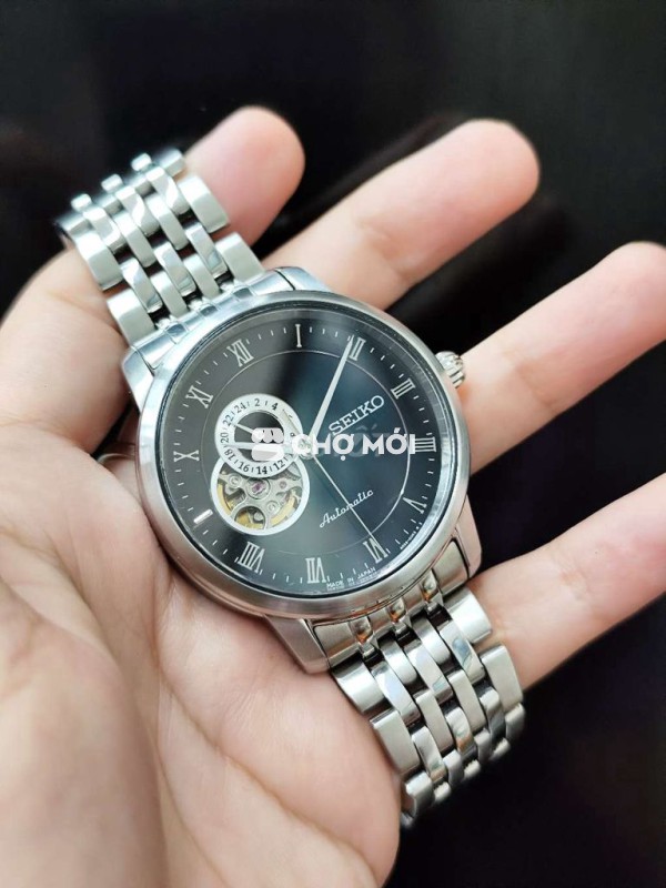 Đồng hồ nam Seiko automatic chuẩn chính hãng Mặt đen size 39.5 mm Hàng lộ tim lộ đáy Còn mới cứng Máy chạy mướt Nguyên zin 3500k Ship cod có cọc