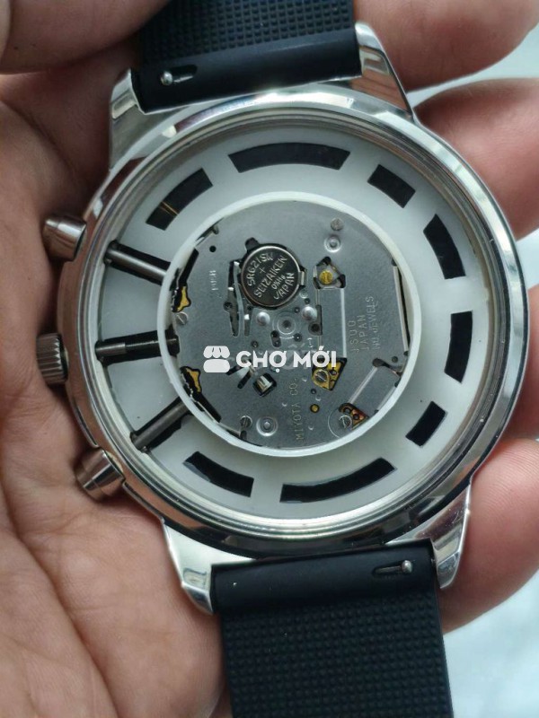 Đồng hồ Nhật 3 cốt 6 kim, size 52mm không kể núm, vỏ inoc & dây silicon mểm mại, máy Myota Nhật, đáy xoáy chống nước 100 mét. Giá 400k