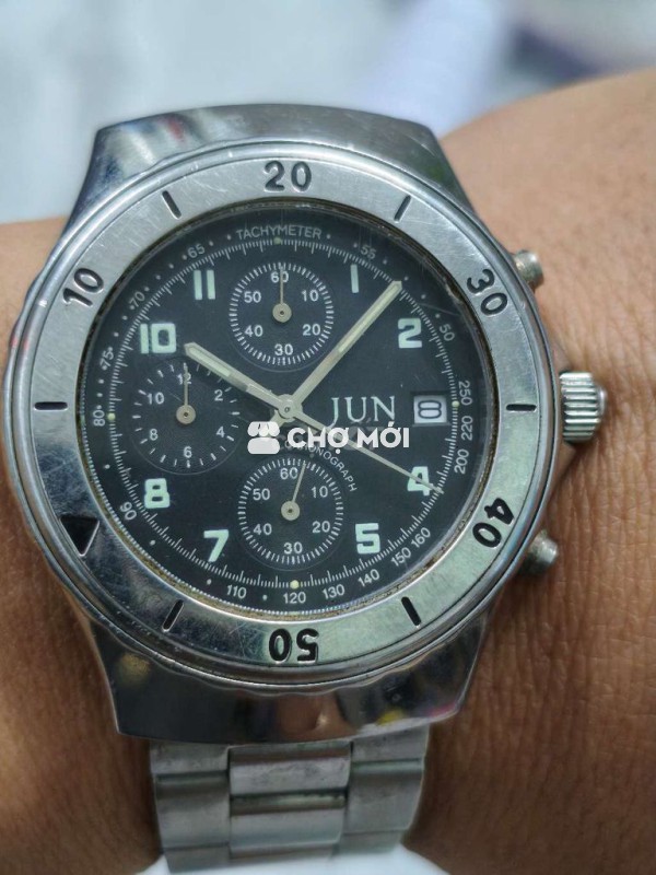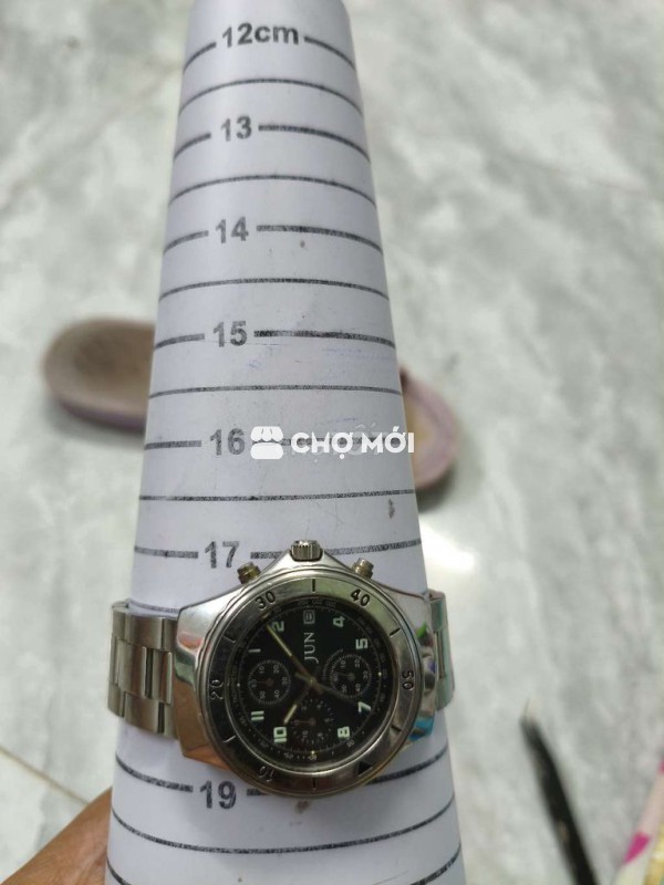 Đồng hồ Nhật 3 cốt 6 kim & 1 ô lịch, size 39mm không kể núm, niềng xoay, đáy xoáy chống nước. Giá 400K