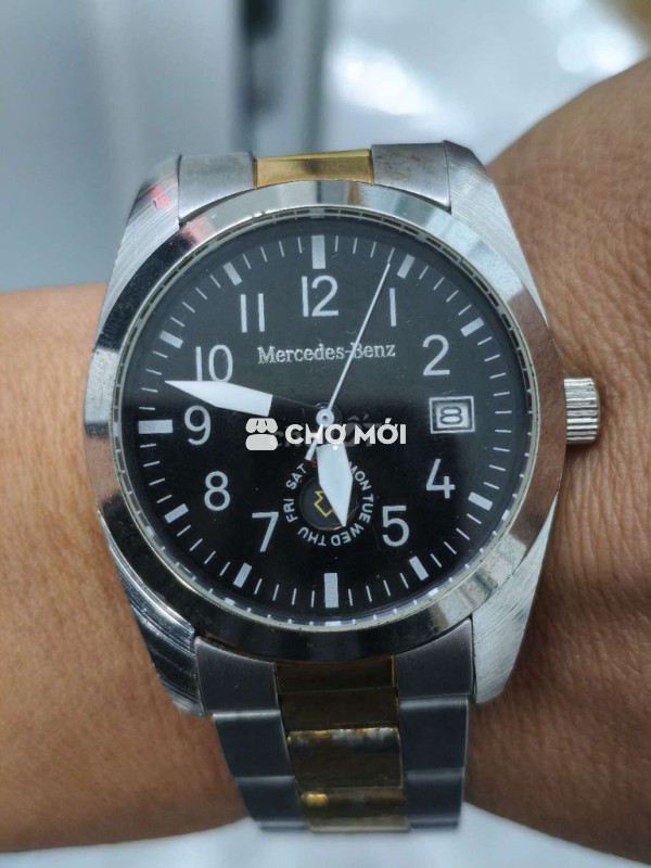 Đồng hồ đeo tay Mercedes-Benz nội địa Nhật, size 36mm, phù hợp cả nam và nữ. - Thiết kế 2 lịch độc đáo, màu bạc và vàng. - Chất liệu kim loại, chống nước khi đi mưa, rửa tay. - Nước vàng có bong tróc nhẹ.