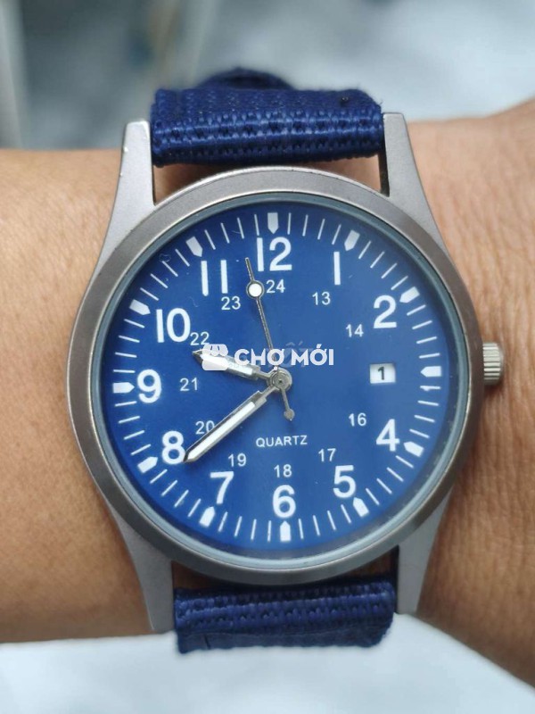 Đồng hồ nội địa Nhật, size 37mm không kể núm, vỏ titanium & dây dù quân đôi, 1 lịch, chống nước mưa & rửa tay. Giá 150K